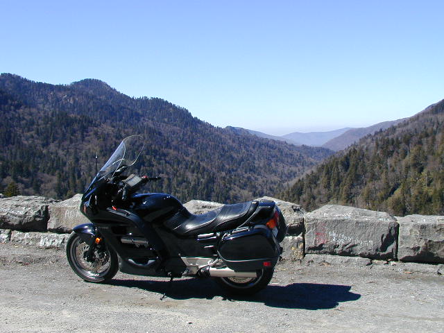 I enjoyed a GREAT 270 mile day today (March 7, 2003). It wasn't raining or snowing and the temperature actually crept up to 60 by late afternoon. It's about damn time! I was even able to ride a short section of the Blue Ridge Parkway (From Cherokee to Maggie Valley) - sure looks different with out the foliage