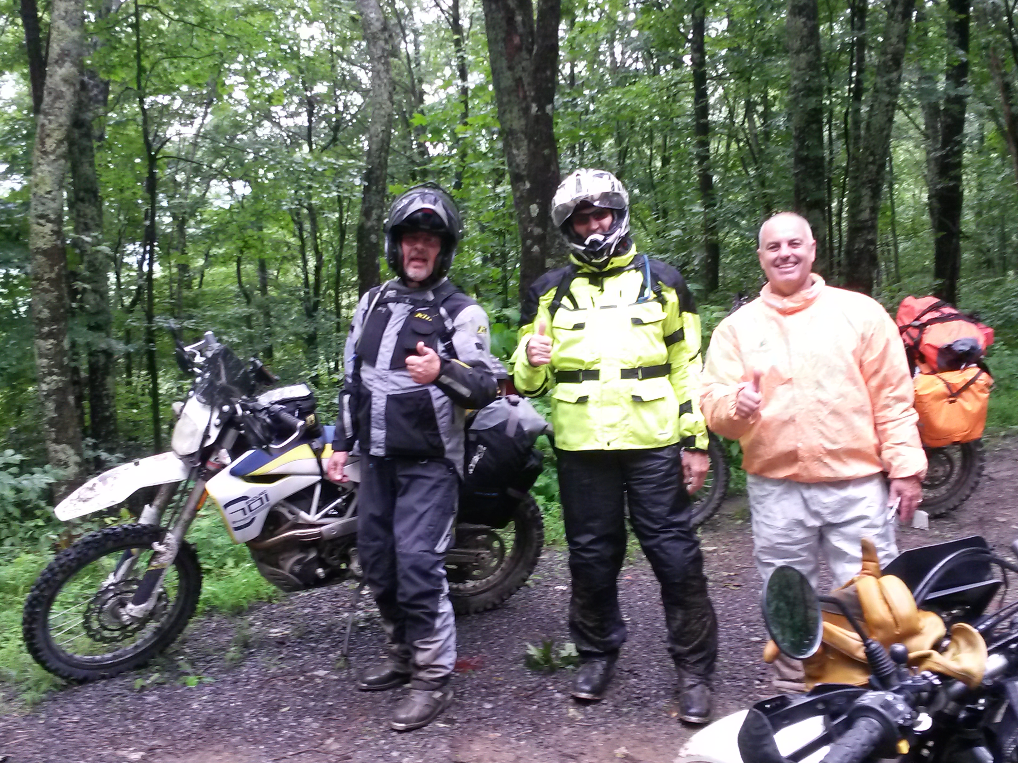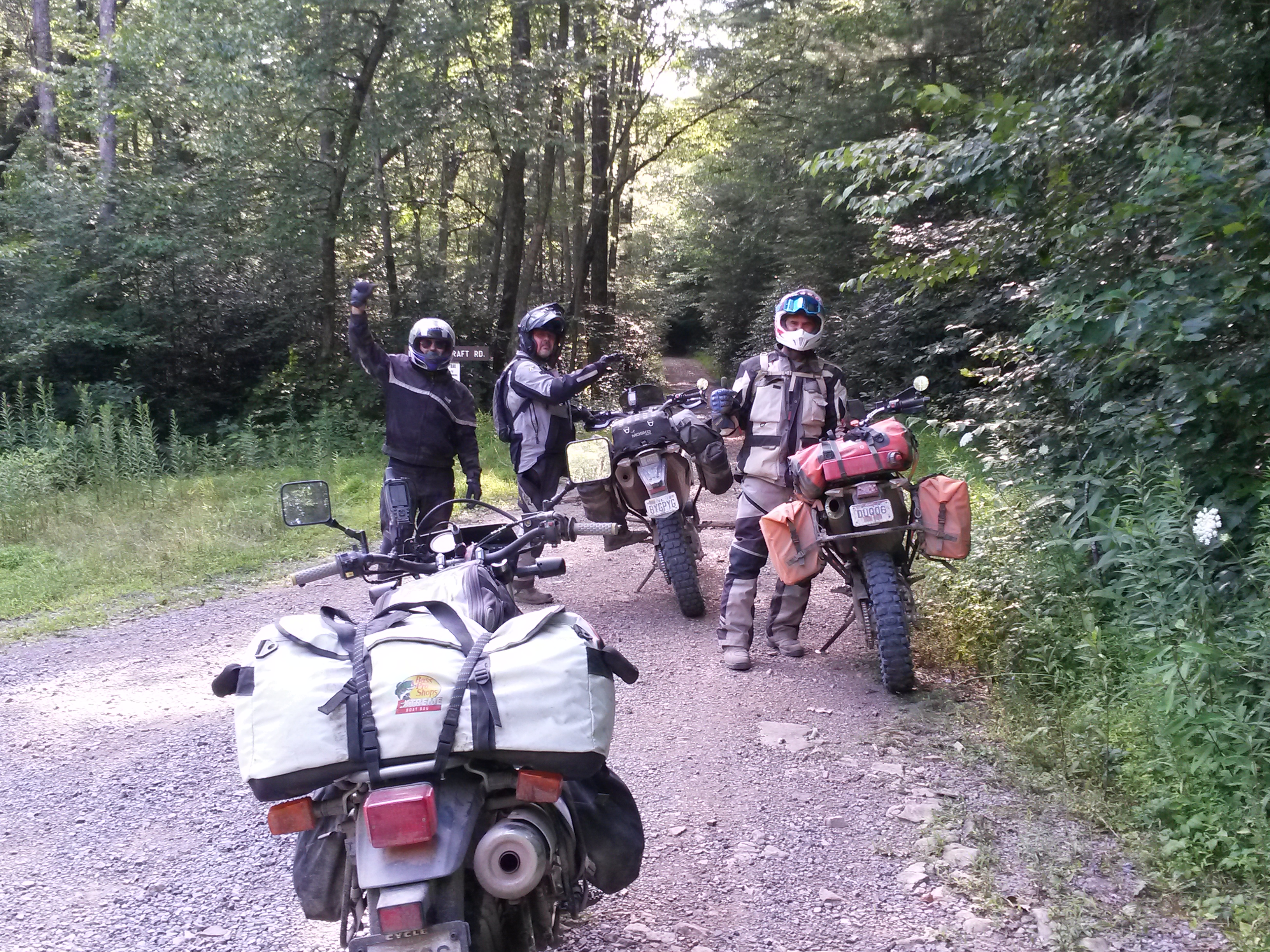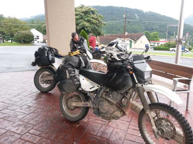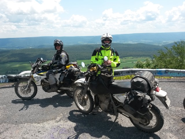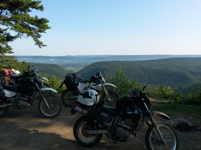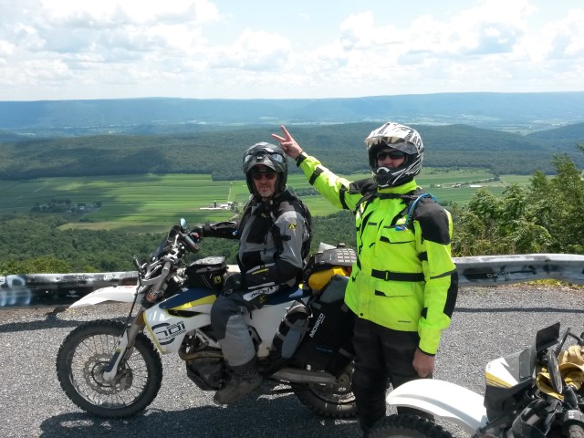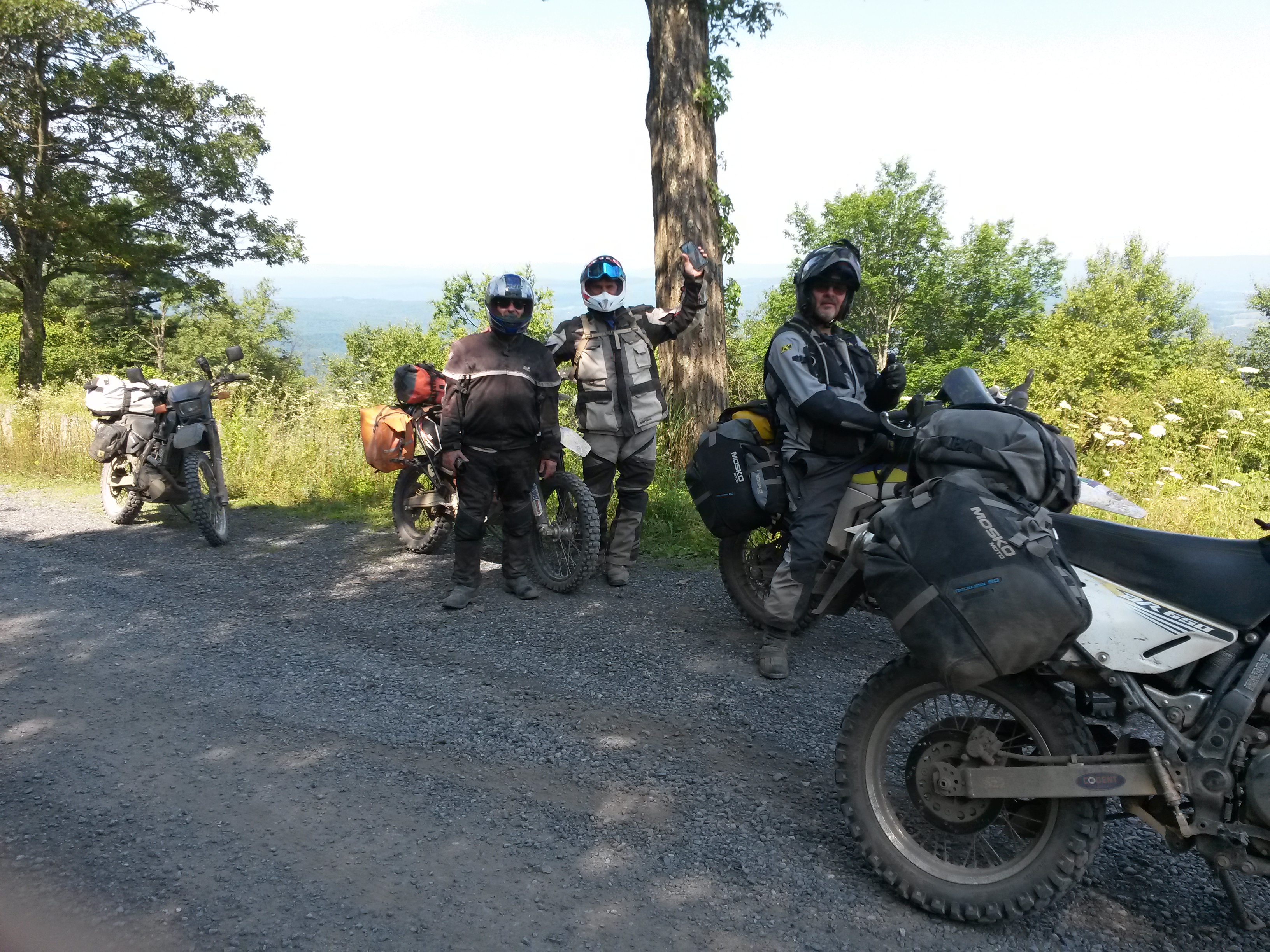 During August, 2019 Galen (Husky 701), George (DR650), Mark (KTM 690) and Jim (DR650) rode the Mid-Atlantic Backcounty Discovery Route from Damascus, VA to the New York state line. We returned to SW Virginia on the old Maine Adventure Trail. 10 Days, 2100 miles. No serious mishaps, great weather and not even one flat tire. On trips like this pictures only get taken at rest stops but a few raw photos without comment follow. Needless to say a good time was had by all.