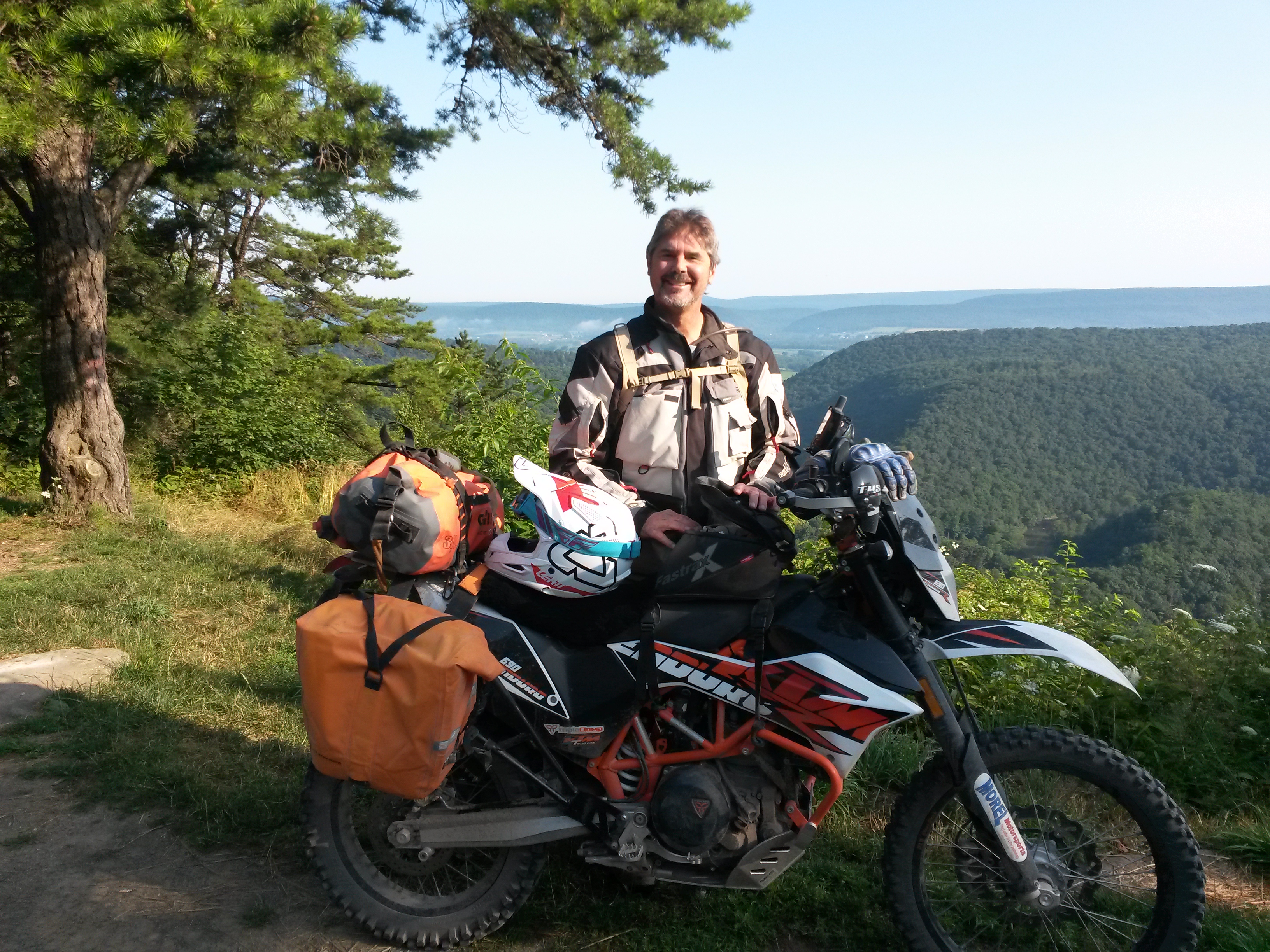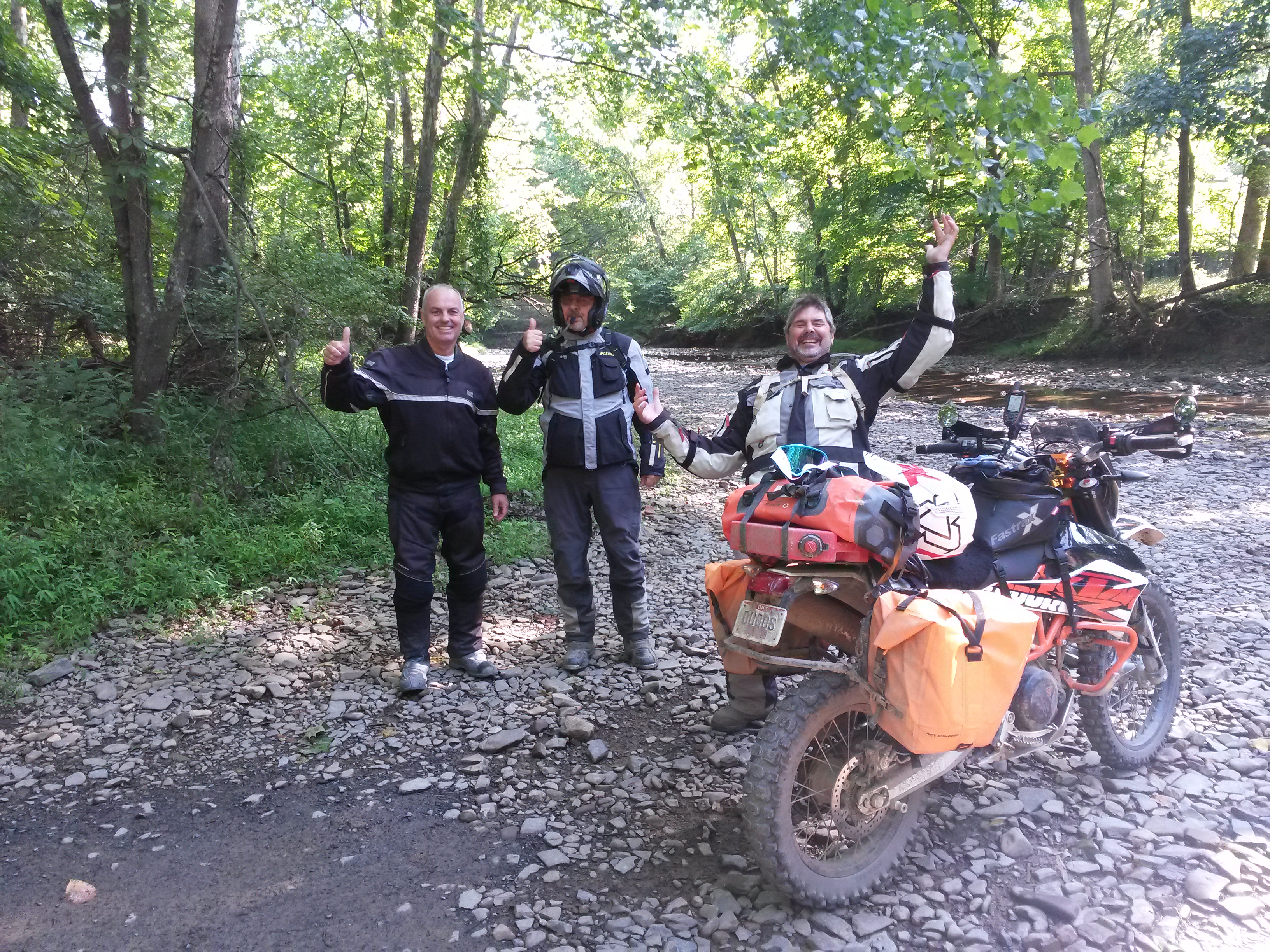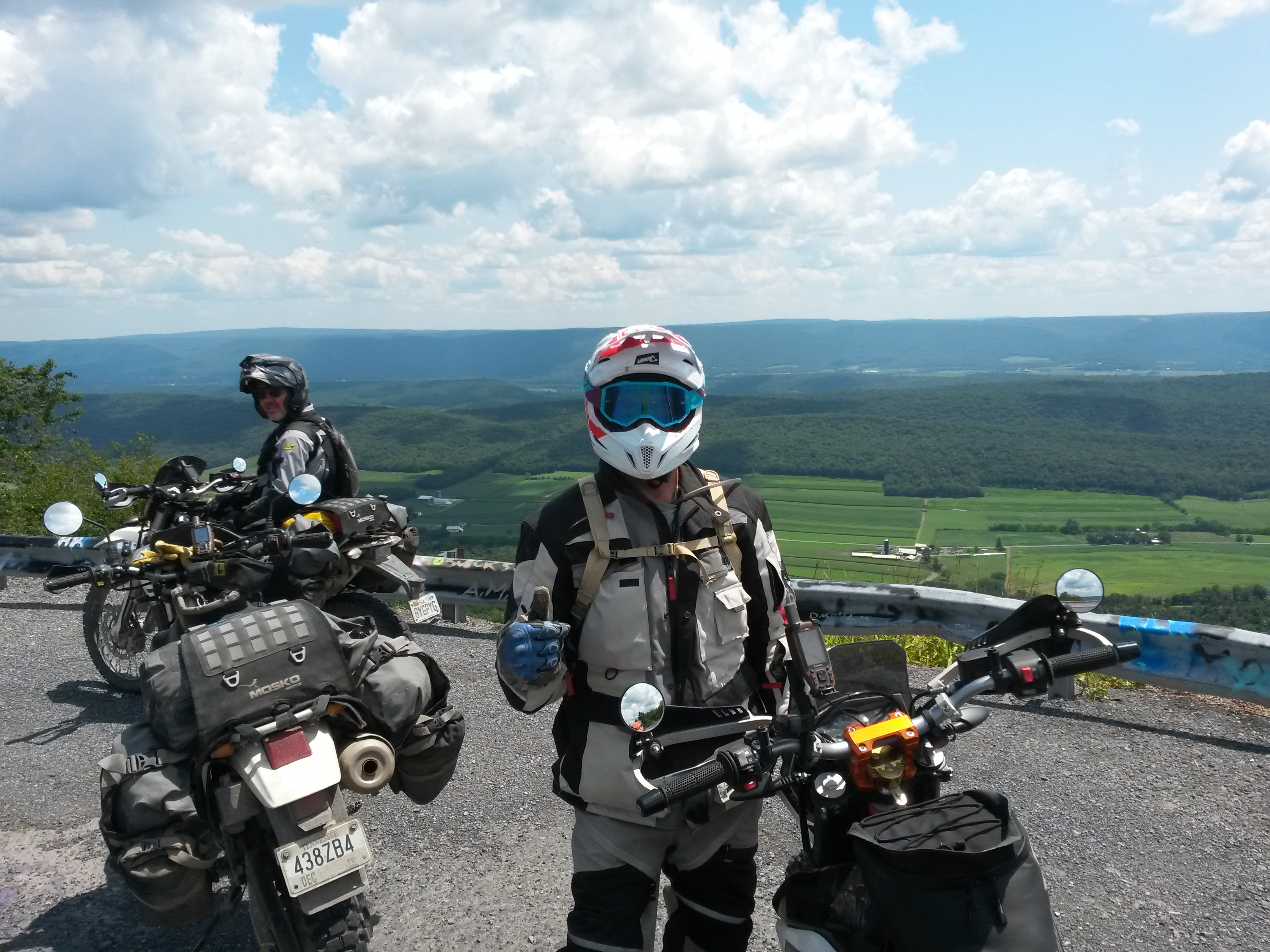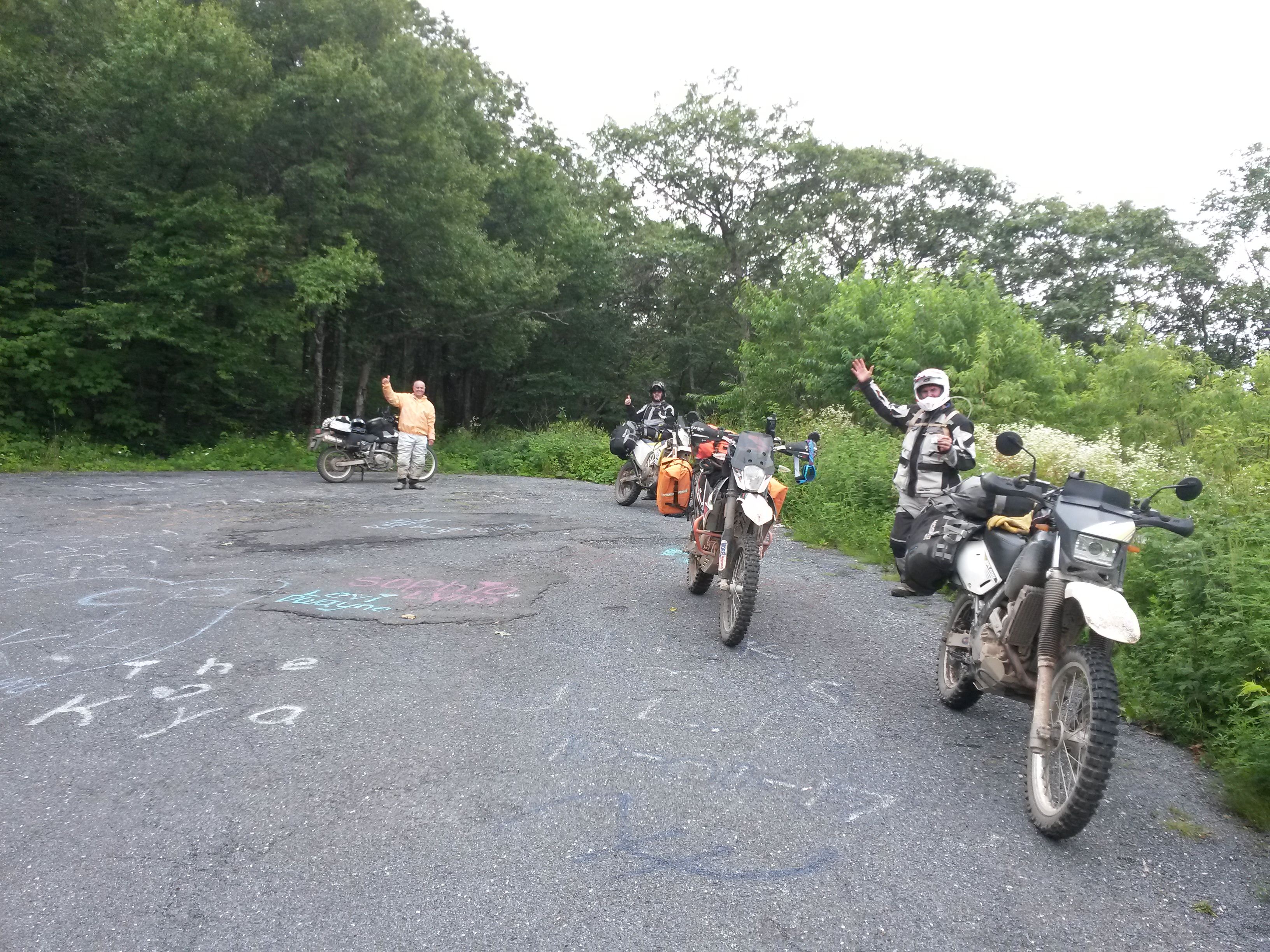 During August, 2019 Galen (Husky 701), George (DR650), Mark (KTM 690) and Jim (DR650) rode the Mid-Atlantic Backcounty Discovery Route from Damascus, VA to the New York state line. We returned to SW Virginia on the old Maine Adventure Trail. 10 Days, 2100 miles. No serious mishaps, great weather and not even one flat tire. On trips like this pictures only get taken at rest stops but a few raw photos without comment follow. Needless to say a good time was had by all.