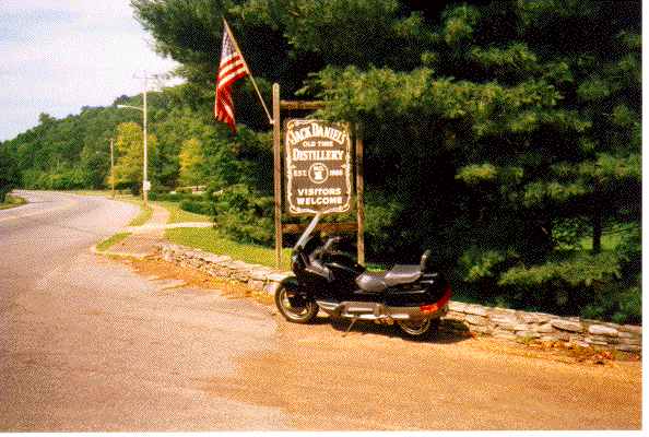 Pressing eastward on a highway correctly marked as a scenic route, riding began to get more difficult. Even though it was only around 3 PM, I had logged nearly 400 miles already and I was hot, a little tired and I finally realized, a lot dehydrated. When I stopped for something to drink around Pulaski, I spotted a picnic table in the shade of a large tree. It was just more than I could stand; I just had to stretch out on that table. I only slept about 30 minutes but afterwards I felt like a new man. When I climbed aboard the PC it actually felt good again. Less than an hour later brought me to the town of Lynchburg made famous by a Mr. Jack Daniels. I made a photo by the sign but didn’t take time out for a guided tour. I understand they don’t give away samples anyway. Photo