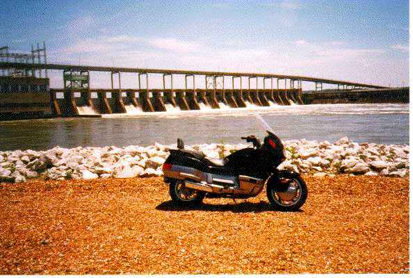 Having lived in Tennessee for the last 28 years, I am quite familiar with the Tennessee Valley Authority (the government agency which manages the hydroelectric and flood-control dams on the Tennessee and tributary rivers). One of the larger dams in the TVA system is Pickwick. I’d never seen Pickwick and chose it as my crossing point for the Tennessee river (like the Mississippi you HAVE to cross it somewhere). It was around noon when I arrived there. This is a pretty impressive structure. The Tennessee at this point is about as wide as the Mississippi at Helena and the dam is a major hydo generation facility. Plus, it has locks to allow commercial river traffic to pass through. The road crosses the top of the dam on an elevated trestle; well worth seeing if you’re ever in this part of the country. Photo One interesting note. There are prominent signs posted below the dam advising boaters to avoid the turbulent, high flow areas where water exits the generators. None-the-less there were two fools in a 12-foot, flat-bottom Jon boat trying to fish in this area. They had a small outboard motor on the boat and based on the amount of blue smoke it was generating the little outboard must have been running wide-open just to hold their position. The driver was steering the boat directly into the current and the other guy had a line in the water. Thank you just the same, I’ll take my chances on a motorcycle anytime! BTW, it was while I was slowly driving around the Pickwick site in the 95-degree heat that the PC’s cooling fan came on for the first time. It took me a moment to realize what it was but when I did, I felt relieved that it actually worked.