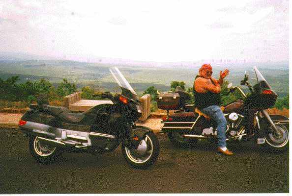 About 20 miles later and still on the Talimena I rolled in to President Bill's home state. When I stopped at the next overlook, I pulled out my Walkman and popped in a tape of 60's and 70's R&R. Just as I engaged the clutch to get rolling again, Steppenwolf's "Born to be Wild" came up on the tape. I couldn't help but laugh out loud; guess that's what this motorcycling thing is all about.