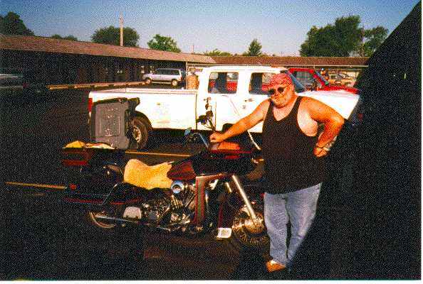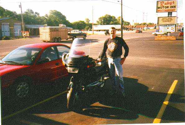 Eventually I find my way back to Jeff's and with a couple of signatures and the exchange of a couple of pieces of paper, the PC becomes mine. In the process of our discussion Jeff has mentioned that he envies my "road trip" and that he might be interested in riding east with me for a while on Saturday. This sounds great to me... what better way to see SE OK than with a native guide. So, I bungee my bag on the pillon and I'm off to the local motel Jeff pointed out on the way in. I'll worry about packing the PC's trunk tomorrow. By this time it's close to 2AM. The last thing I remember is nodding off with the Honda manual on my chest. Next thing I know it's daylight!