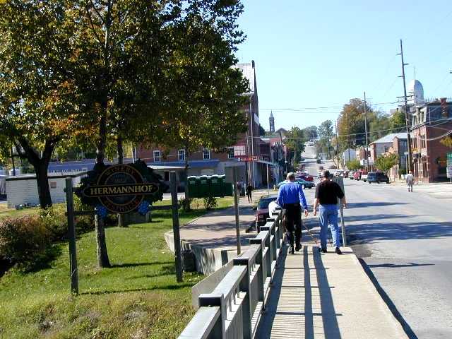 Achtung! Downtown Hermanhof, MO. A VERY German place. The Missouri river and Union Pacific railroad is off to the right.