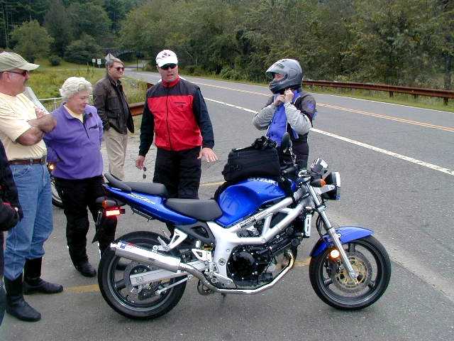 Galen tempts Nancy with his SV650 - It worked, she wants one bad.
